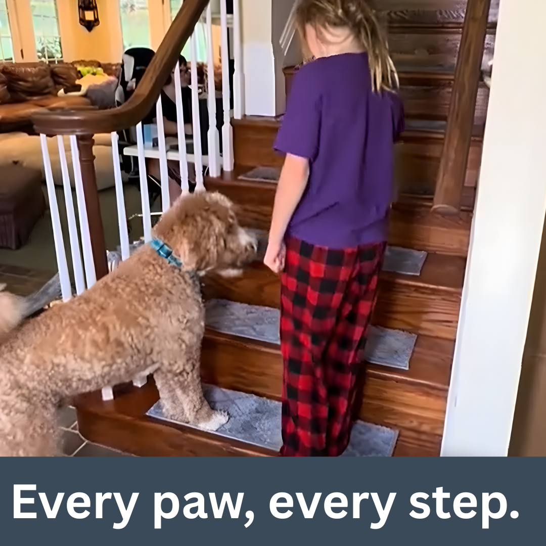 TreadKind™ is made for real homes — the ones with kids, pets, and loved ones moving through them every day. Our non-slip treads lay flat, stay put, and deliver a soft step that feels as safe as it looks. No curling edges, no slipping corners — just reliable grip and quiet peace of mind with every step.